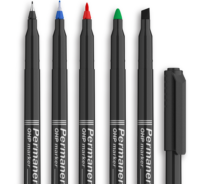 Suitable for marking plastic, glass, metal, wooden and almost all other surfaces. Quick-drying ink, wipe resistant. Bullet or chisel nib. Line thickness: up to 0,3 – 3 mm.